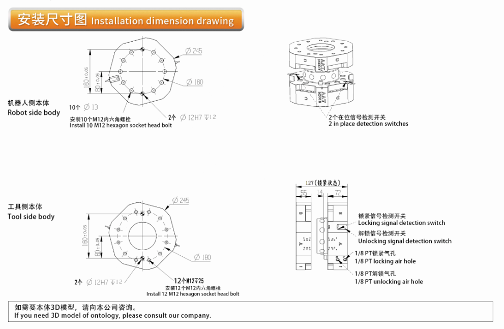 采用主盘气动钢珠强制锁紧、解锁方式。